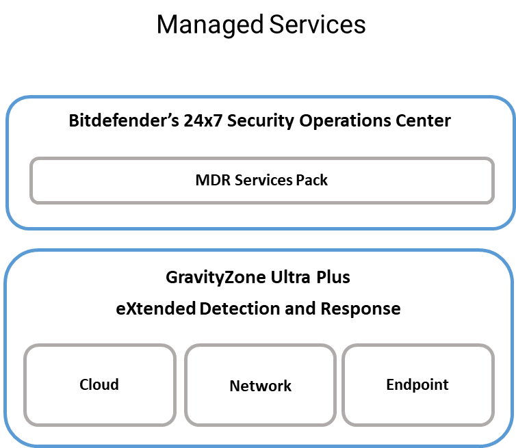 GravityZone Ultra Plus extends the endpoint-based threat detection capabilities of a traditional EDR by incorporating network incidents (XDR) to successfully counter advanced threats no matter where they emerge in the infrastructure: on the Endpoints, in the Network or in the Cloud.